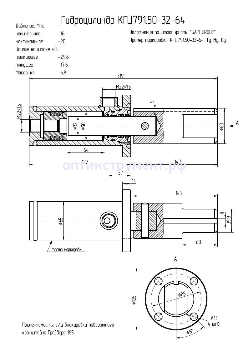 Гидроцилиндр блокировки поворотного кронштейна (автогрейдера 165) КГЦ 791.50-32-64 в продаже по цене 9 720 руб. в Интернет-магазине Проф-инструмент с доставкой в Севастополе. Звоните по телефону +8 (800) 302-10-51.