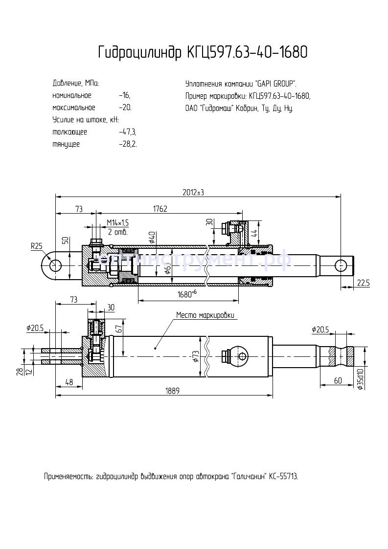 Гидроцилиндр выдвижения опор автокрана "Галичанин КС-55713" КГЦ 597.63-40-1680 в продаже по цене 18 810 руб. в Интернет-магазине Проф-инструмент с доставкой в Севастополе. Звоните по телефону +8 (800) 302-10-51.