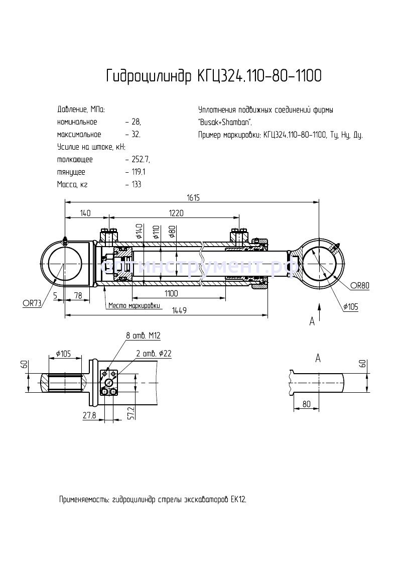 Гидроцилиндр стрелы экскаваторов "ЕК12"КГЦ 324.110-80-1100 в продаже по цене 43 095 руб. в Интернет-магазине Проф-инструмент с доставкой в Севастополе. Звоните по телефону +8 (800) 302-10-51.
