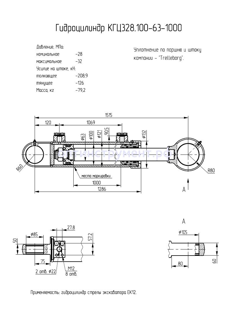 Гидроцилиндр стрелы экскаватора "ЕК12" КГЦ 328.100-63-1000 в продаже по цене 34 800 руб. в Интернет-магазине Проф-инструмент с доставкой в Севастополе. Звоните по телефону +8 (800) 302-10-51.