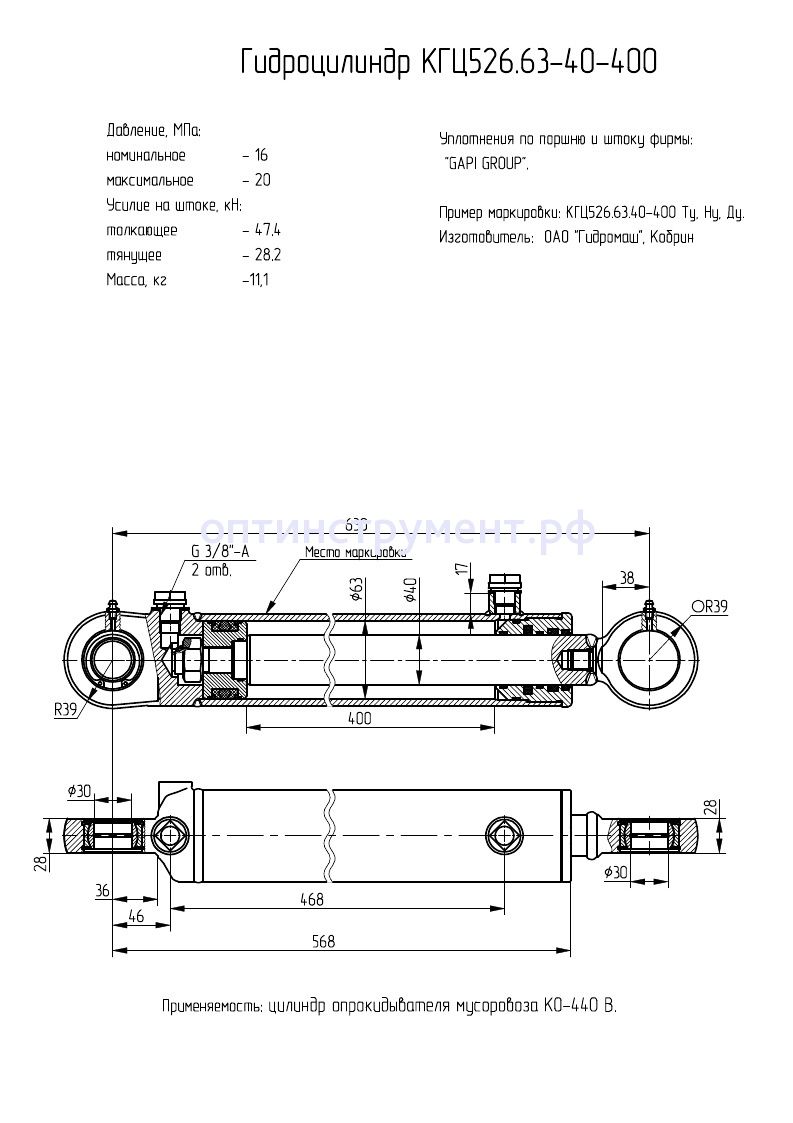 Гидроцилиндр опрокидывателя мусоровоза "КО-440В" КГЦ 526.63-40-400 в продаже по цене 10 170 руб. в Интернет-магазине Проф-инструмент с доставкой в Севастополе. Звоните по телефону +8 (800) 302-10-51.