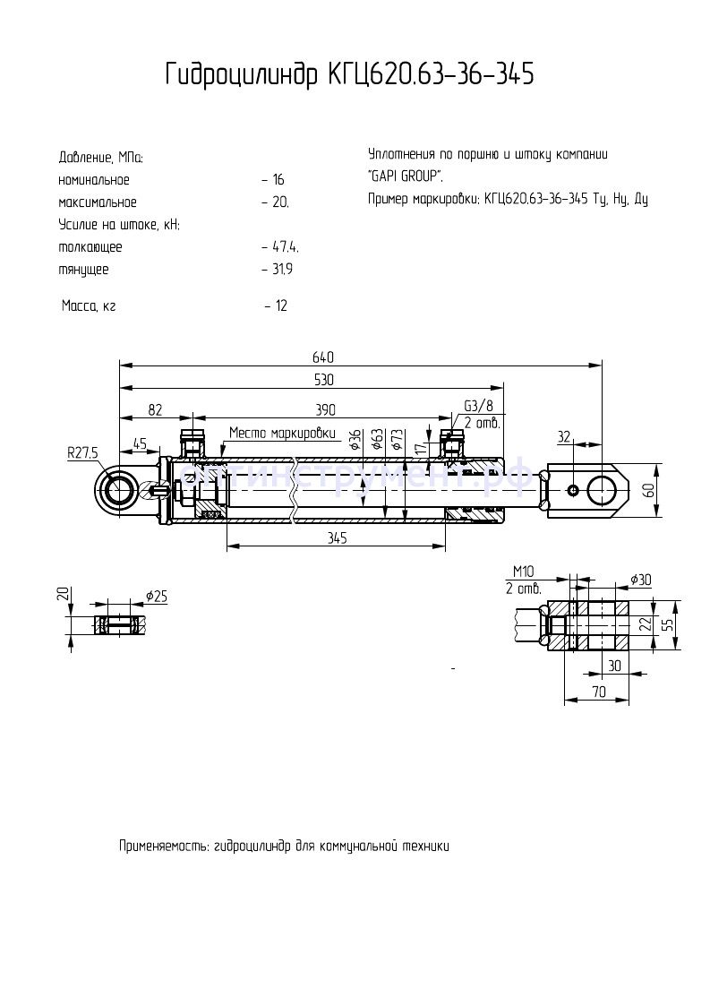 Гидроцилиндр для коммунальной техники КГЦ 620.63-36-345 в продаже по цене 9 990 руб. в Интернет-магазине Проф-инструмент с доставкой в Севастополе. Звоните по телефону +8 (800) 302-10-51.