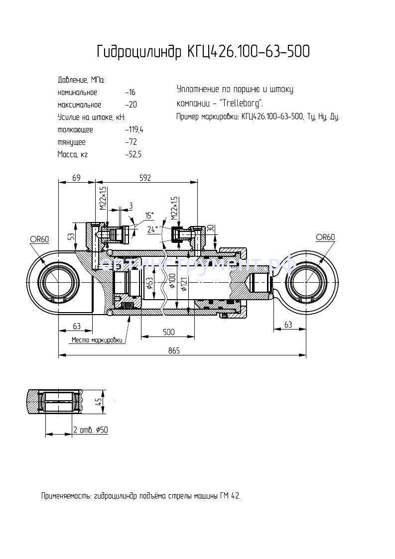 Гидроцилиндр подъёма стрелы машины "ГМ 42" КГЦ 426.100-63-500 в продаже по цене 25 080 руб. в Интернет-магазине Проф-инструмент с доставкой в Севастополе. Звоните по телефону +8 (800) 302-10-51.