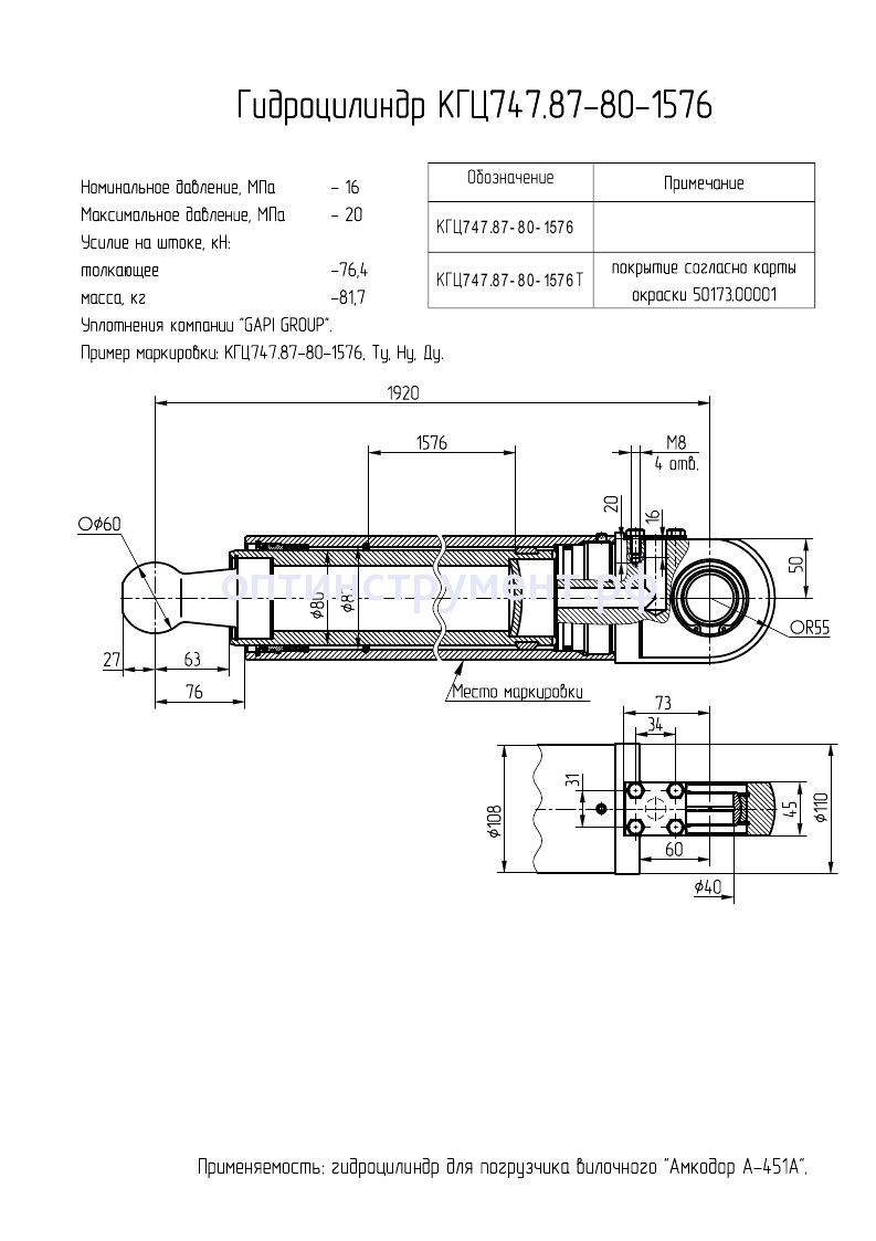 Гидроцилиндр для погрузчика вилочного "Амкодор А-451А" КГЦ 747.87-80-1576 в продаже по цене 35 160 руб. в Интернет-магазине Проф-инструмент с доставкой в Севастополе. Звоните по телефону +8 (800) 302-10-51.