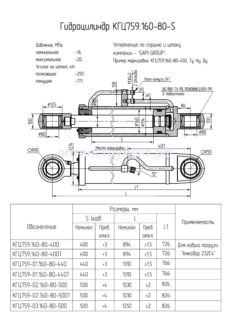 Гидроцилиндр для ковша погрузчика "Амкодор 232С4" КГЦ 759-01.160-80-440 в продаже по цене 0 руб. в Интернет-магазине Проф-инструмент с доставкой в Севастополе. Звоните по телефону +8 (800) 302-10-51.
