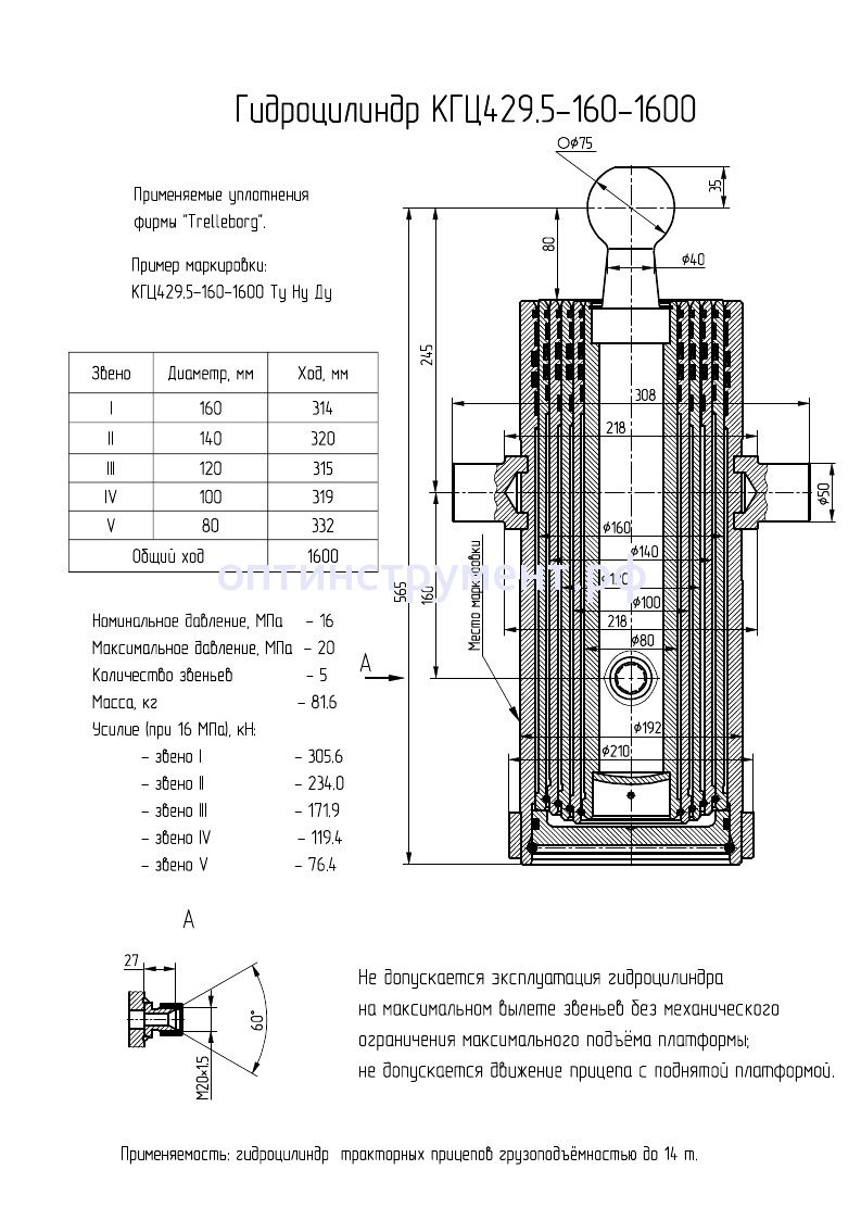 Гидроцилиндр подъема тракторных прицепов грузоподъёмностью до 14 т. КГЦ 429.5-160-1600 в продаже по цене 0 руб. в Интернет-магазине Проф-инструмент с доставкой в Севастополе. Звоните по телефону +8 (800) 302-10-51.