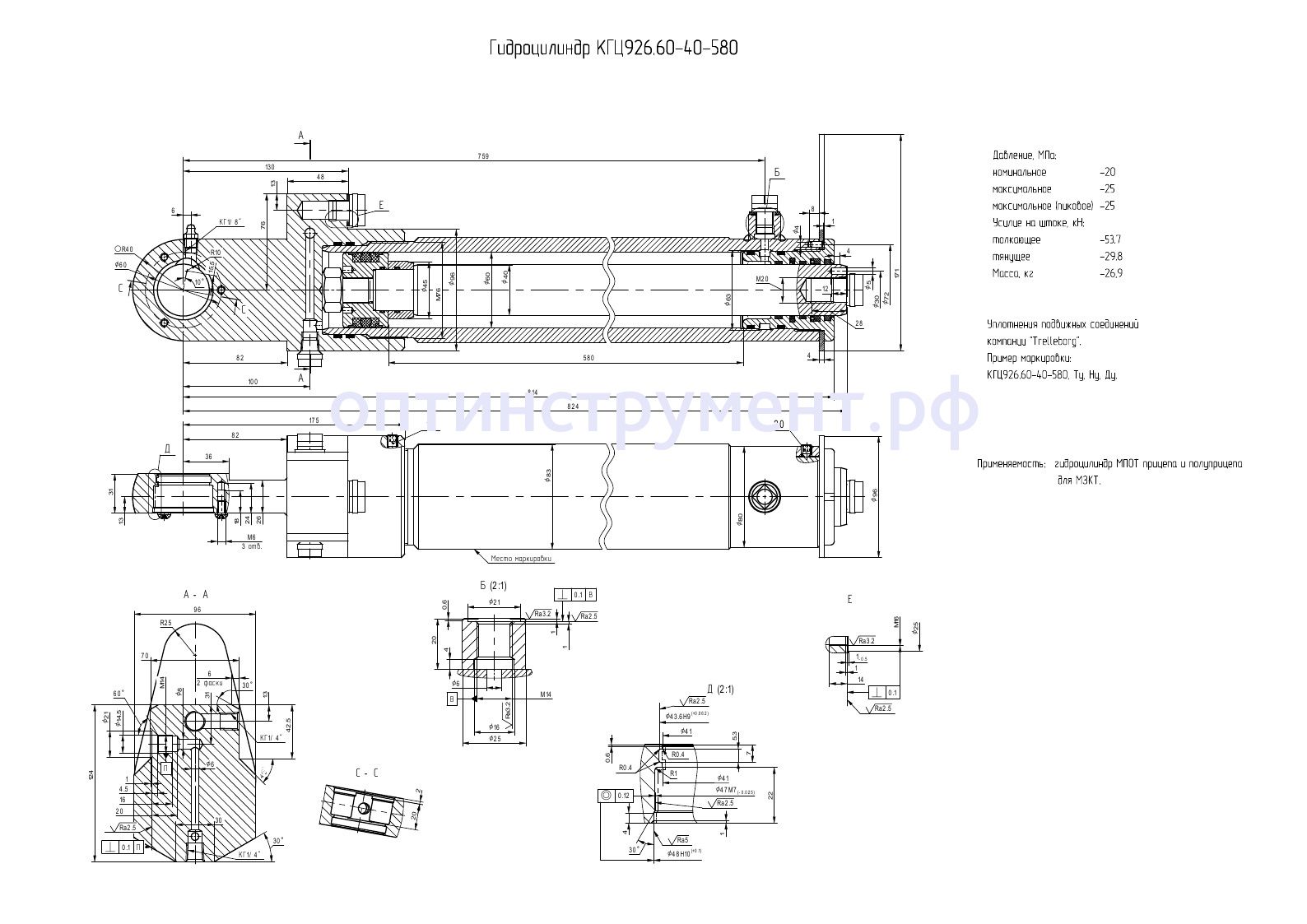 Гидроцилиндр МПОТ прицепа и полуприцепа для "МЗКТ" КГЦ 926.60-40-580 в продаже по цене 0 руб. в Интернет-магазине Проф-инструмент с доставкой в Севастополе. Звоните по телефону +8 (800) 302-10-51.