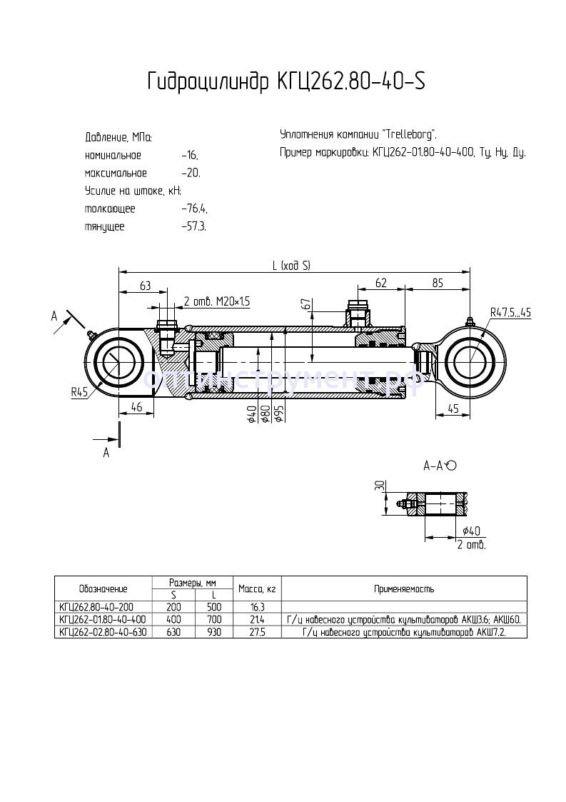 Гидроцилиндр навески культиватора АКШ КГЦ 262.80-40-200 в продаже по цене 9 990 руб. в Интернет-магазине Проф-инструмент с доставкой в Севастополе. Звоните по телефону +8 (800) 302-10-51.