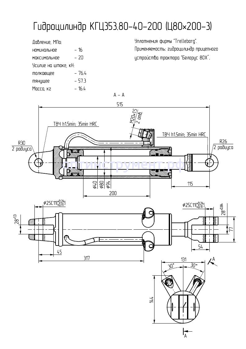 Гидроцилиндр прицепного устройства трактора "Белорус 80Х" КГЦ 353.80-40-200 в продаже по цене 11 235 руб. в Интернет-магазине Проф-инструмент с доставкой в Севастополе. Звоните по телефону +8 (800) 302-10-51.