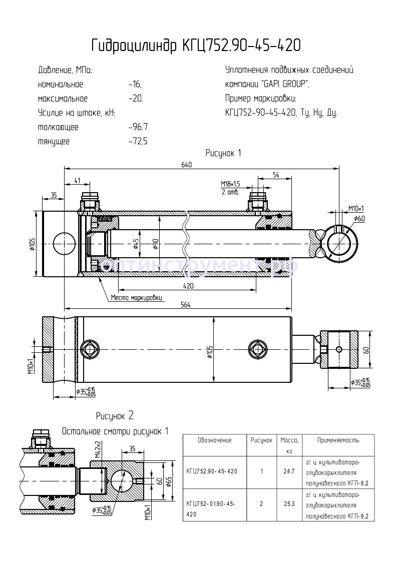 Гидроцилиндр культиватора-глубокорыхлителя полунавесного "КГП-6.2" КГЦ 752.90-45-420 в продаже по цене 0 руб. в Интернет-магазине Проф-инструмент с доставкой в Севастополе. Звоните по телефону +8 (800) 302-10-51.