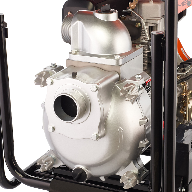 Дизельная мотопомпа, для сильно загрязненных вод (откачка строительных котлованов, осушение болот и ликвидация затоплений) лёгкосъёмная передняя крышка для очистки насосной части при засорении. Двигатель 186FAE Макс. мощность 9,7 лс, Производительность 70 м³/час , напор 25 м, D вх/вых 80 мм, размер частиц 30 мм, бак 12,5 л