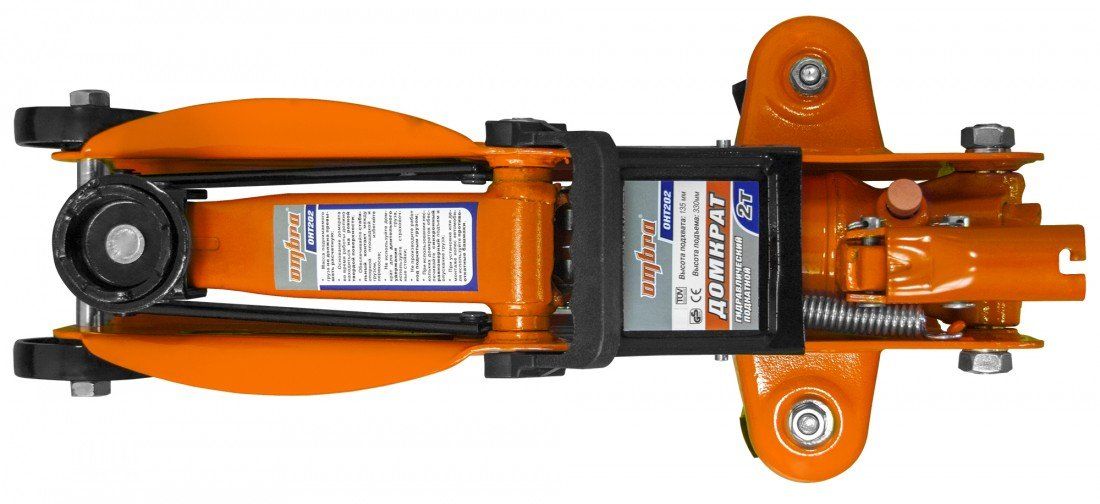 Гидравлический подкатной домкрат Ombra ОНТ 202С грузоподъемностью 2 т. Высота подхвата 135 мм, высота подъема 330 мм, масса 8,25 кг.