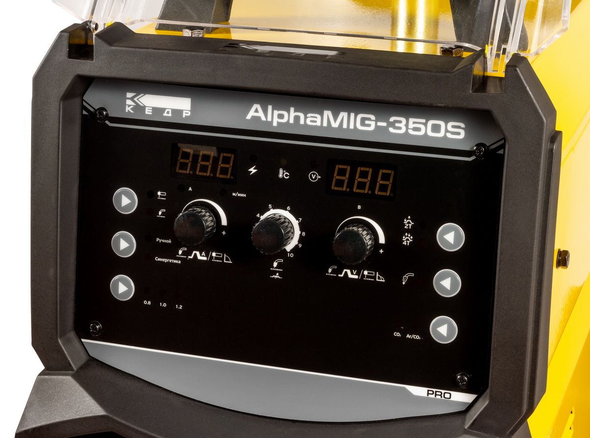 КЕДР AlphaMIG-350S оснащен интеллектуальной моделью управления, позволяющей сварщику в кратчайшие сроки подготавливать оборудование к работе и переходить от процесса к процессу. Помимо этого, аппарат позволяет осуществлять ручную подстройку скорости подачи проволоки в синергетическом режиме, адаптируя сварочные характеристики под конкретный материал и условия работы. Аппарат имеет высокую степень защиты от пыли и влаги, что позволяет использовать его в самых суровых условиях.