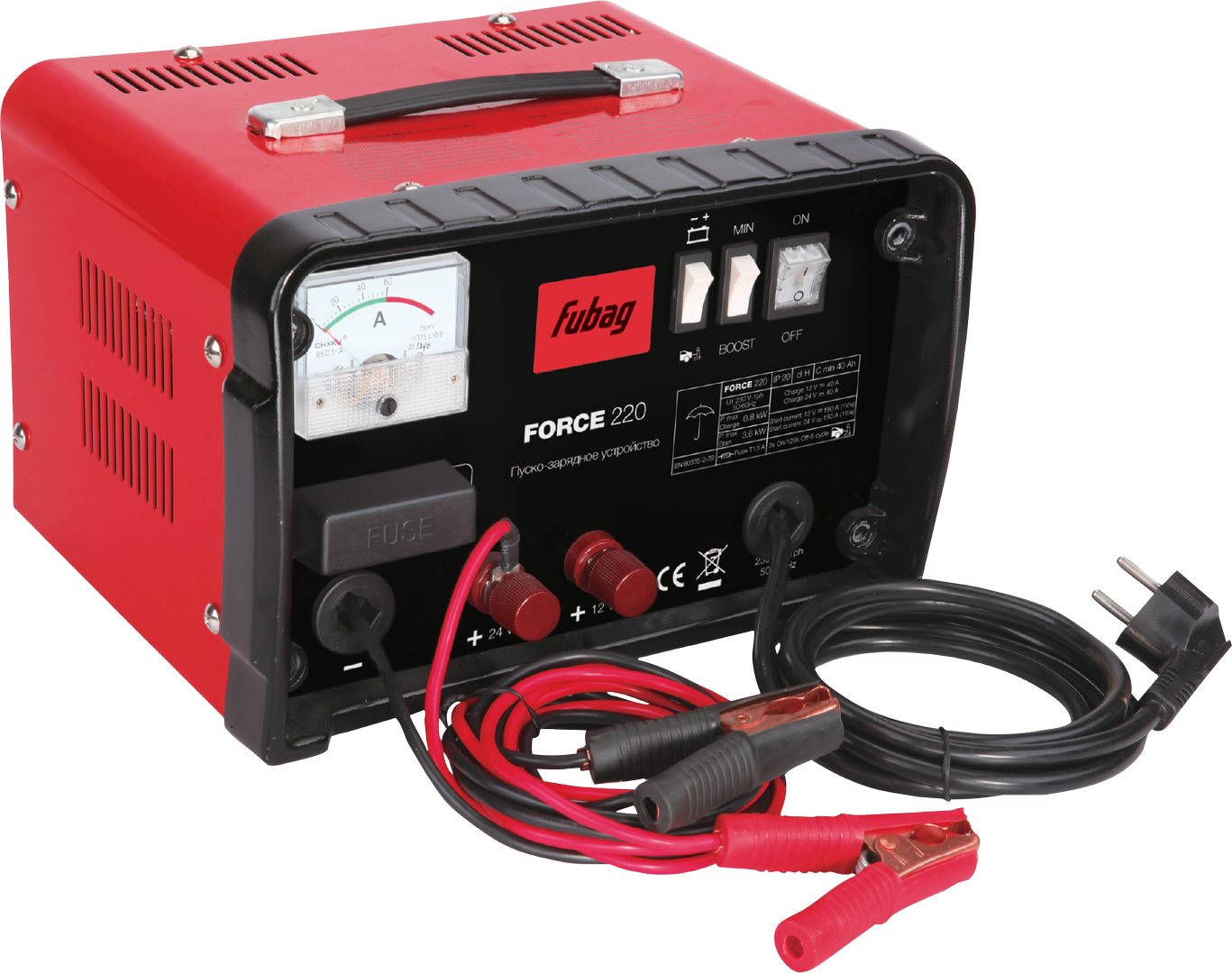 Пуско-зарядное устройство Fubag FORCE 220 -предназначены для зарядки автомобильных кислотных аккумуляторов. Устройство может восстановить полностью разряженную аккумуляторную батарею. При помощи устройства можно быстро зарядить севший аккумулятор до степени, когда станет возможен запуск двигателя от аккумулятора.