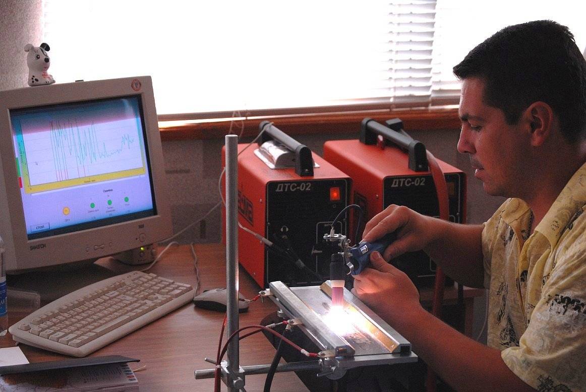 Тренажер позволяет имитировать процесс сварки с помощью реальной малоамперной сварочной дуги.